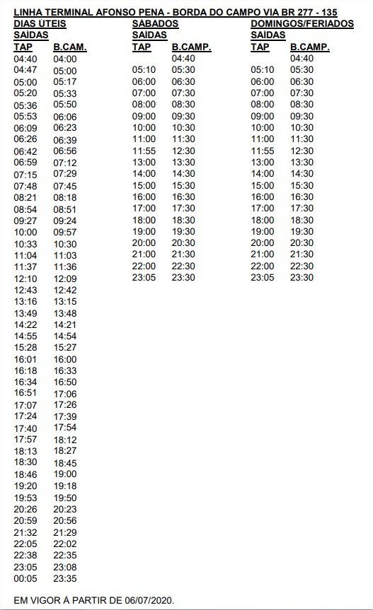 22/02/2021 – Alteração da linha E11 – T. AFONSO PENA / T. BOQUEIRÃO